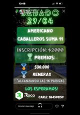 »» Evento: Americano suma 11 caballeros »» Localidad: Colon »» Fechas: 29/04/2023 al 29/04/2023