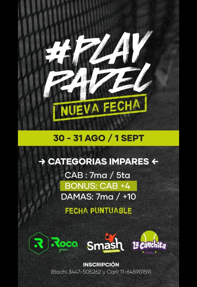 »» Evento: TORNEO PLAY PADEL SEPTIEMBRE IMPARES 2024 »» Localidad: Colon | San Jose »» Fechas: 30/08/2024 al 01/09/2024